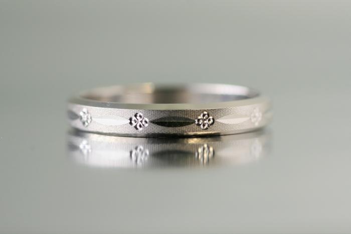 プラチナ850純度の台座に一部のみ彫と忘れな草の押し型を施したリングです。